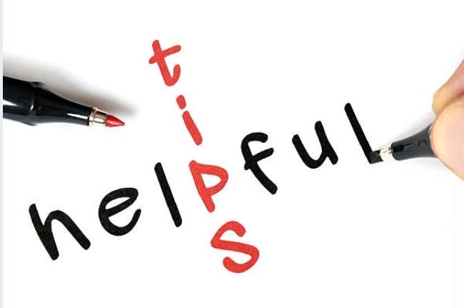 Hand-drawn text spelling out the phrase helpful tips in black and red ink, symbolising guidance, advice, or instruction.